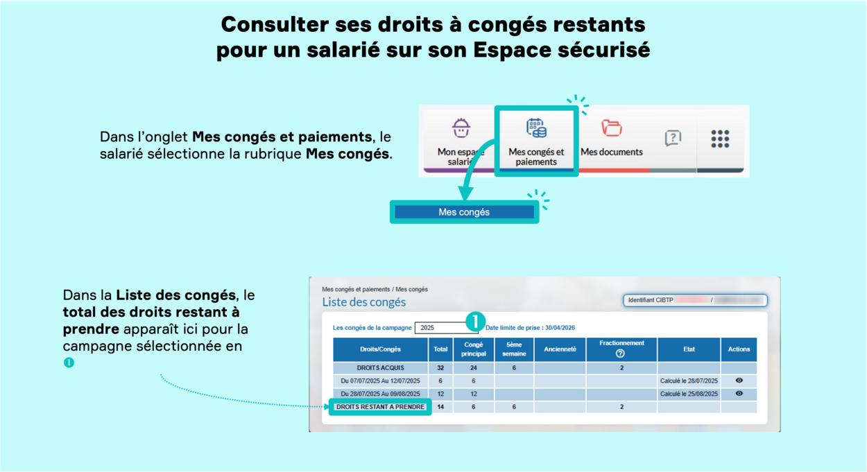 Chaque départ en congé génère l’édition d'un avis et d'une attestation de paiement, disponibles sur leur Espace sécurisé. Vos salariés ont donc tout au long de l’année le décompte de leurs jours restant à prendre.