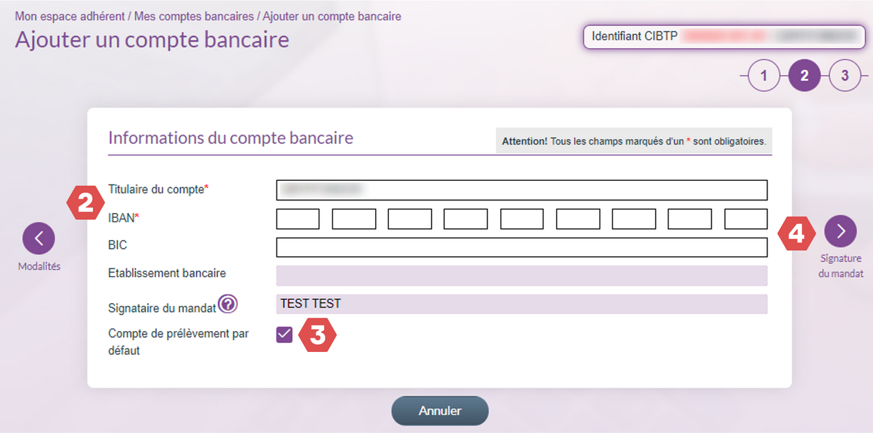 2. Préciser impérativement votre Identifiant CIBTP au début du libellé de l’ordre de virement